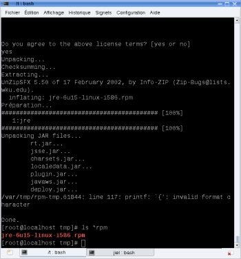 - Cas général : rpm -ivh jre-*-linux-i586.rpm (en root).