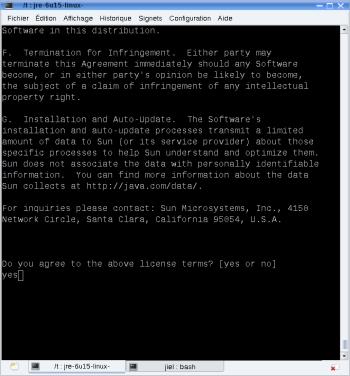 - Distribution de famille Fedora/Red Hat : yum install jre-*-linux-i586.rpm (en root).