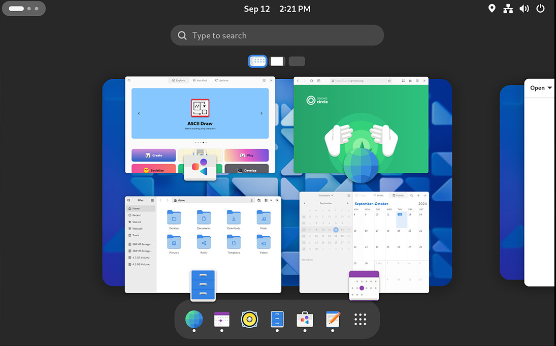 Ci-dessous un exemple de bureau GNOME 4.5 :