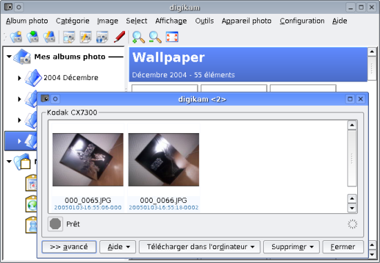- digikam : application KDE utilisant les librairies gphoto2. Ce programme propose en plus des fonctions de gestion des albums de photos.