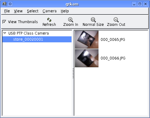 - gtkam : application gtk hébergée par le projet gPhoto2.