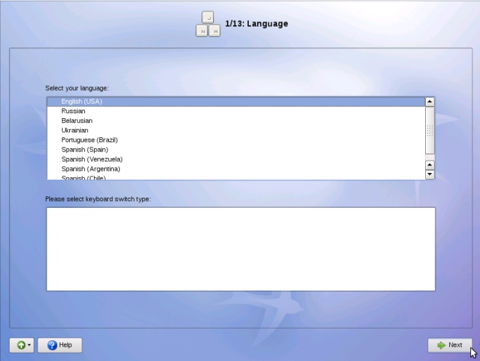 Choisissez « English (USA) » (« Anglais ») comme langue d'utilisation. Cliquez maintenant sur « Next ».