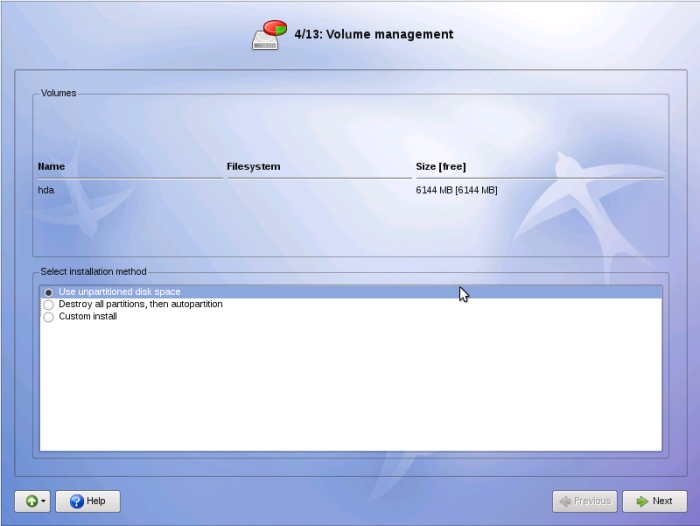 Il est fortement conseillé d'avoir déjà partionné son disque avec un outil tel que GParted (GNOME) ou Diskdrake (Mandriva) et d'avoir libéré plusieurs gigaoctets pour recevoir la distribution.