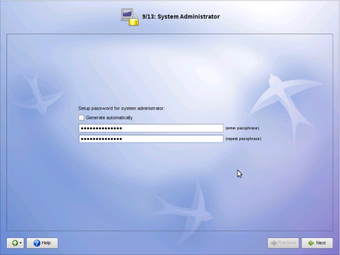 Vous devez maintenant définir un mot de passe pour le compte root. Root est le super-utilisateur qui a tous les pouvoirs sur le système. Trouvez un mot de passe à la fois solide et pas trop difficile à mémoriser : lorsque vous voudrez faire des opérations « sensibles » sur le système, comme changer des paramètres du système ou installer de nouveau programmes, ALT vous demandera ce mot de passe. Cela peut paraître contraignant, mais c'est un gage de sécurité. Cliquez ensuite sur « Next ».
