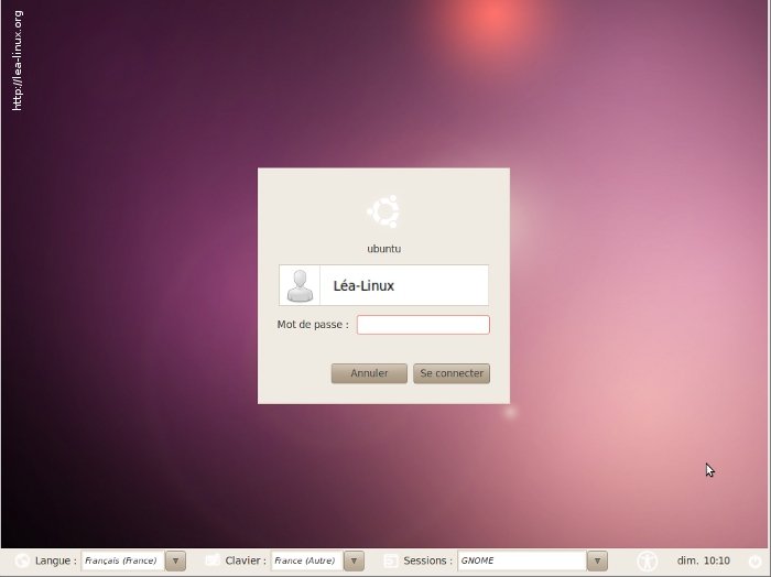 Après le redémarrage, vous arrivez à la fenêtre suivante : loguez-vous, et profitez d'Ubuntu !