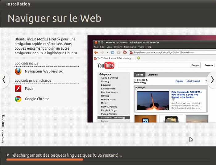Si vous avez été rapide lors de vos configuration, l'installeur d'Ubuntu vous affiche un diaporama marketing vantant les qualités de la distribution et ses nouvelles fonctionnalités.