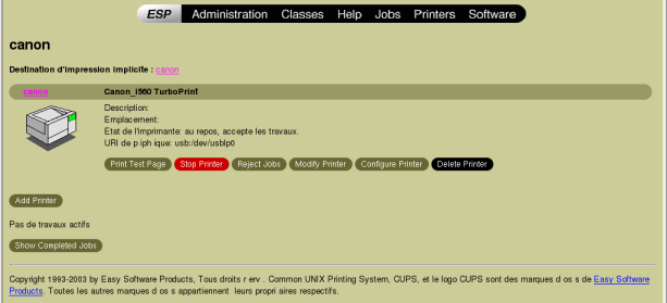 Ci-dessous la configuration et la gestion d'une imprimante :