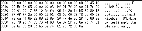 Établissons la connexion sur un serveur telnetd fonctionnant sous GNU/Linux. Après quelques échanges de paquets, nous obtenons la bannière d'accueil :