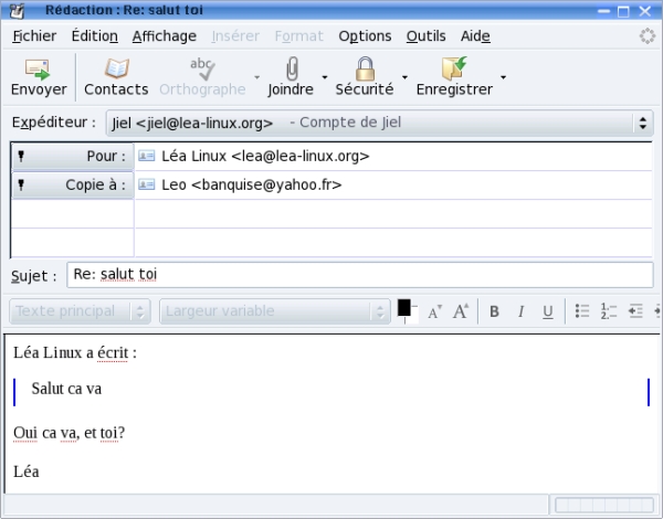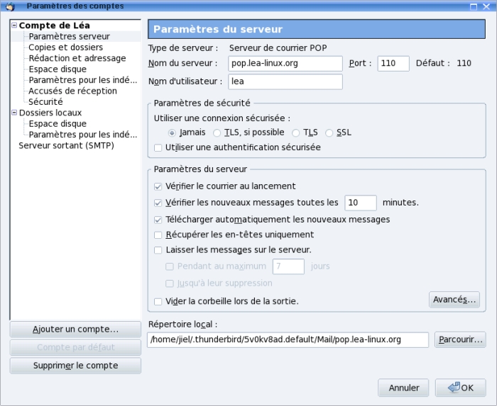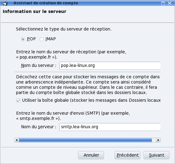 Ce sujet fait l'objet de sa propre documentation sur Léa : Lire les mêmes courriers avec Mozilla Thunderbird sous GNU/Linux et Windows