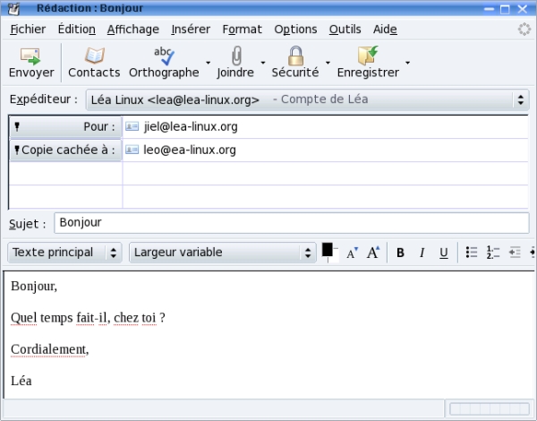 Il ne vous reste qu'à compléter et envoyer le message comme si c'était un nouveau message. Vous pouvez bien sûr rajouter ou enlever des destinataires à tout moment.