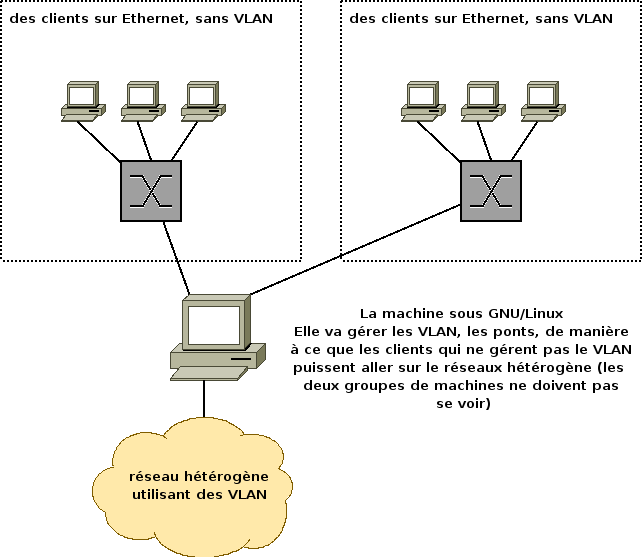 On a un réseau hétérogène de machines et matériel (switchs, routeurs) gérant les VLAN TAG, appelons le LE MONDE.